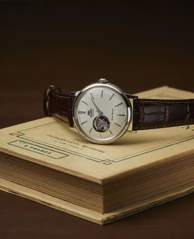 The open heart quietly reveals the movement, offering a glimpse into time’s inner rhythm. The hands sweep with effortless grace, creating a design that is easy to wear and admired in every moment.