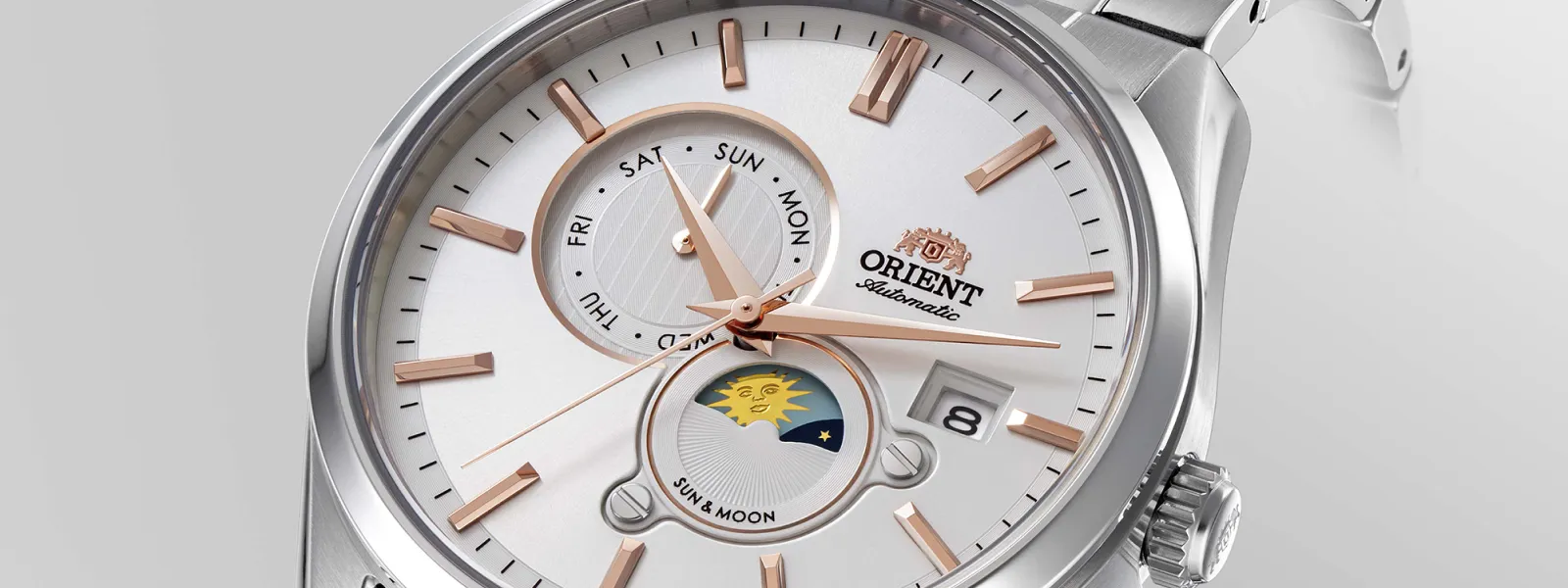 On its richly textured dial, a sun-and-moon subdial traces the quiet poetry of day and night.