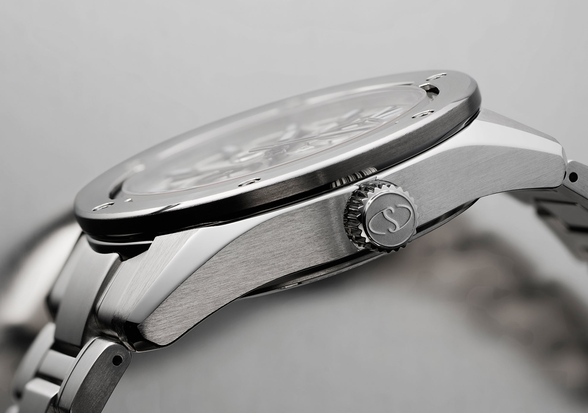 The stainless steel (SUS316L) case features a delicate brushed finish, while the mirror finish by Sallaz polishing on the lugs adds an accent to the watch.