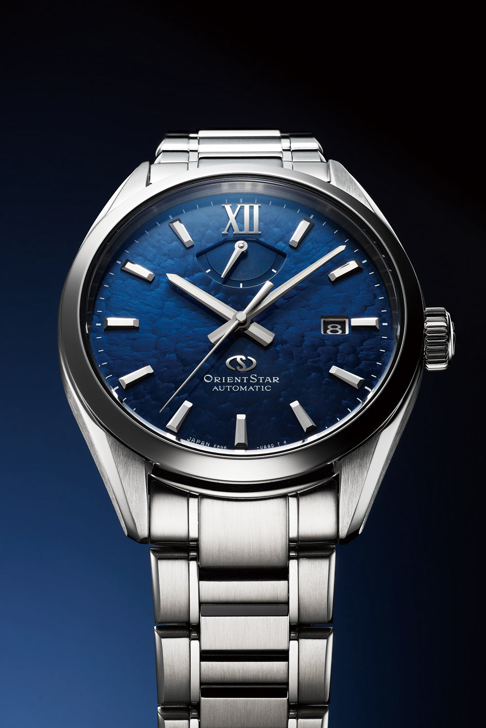 The limited edition model features a white dial to depict a meteor shower just before daybreak, while the new regular model has a blue dial that expresses the Perseids meteor shower adorning the midnight sky and gives the watch a slimmer look. Indeed, the deep, clear blue of the dial is truly reminiscent of a cloudless night sky. This new expression of dial colour could only be achieved through the optical multilayer technology developed by Orient Star’s parent company Epson.