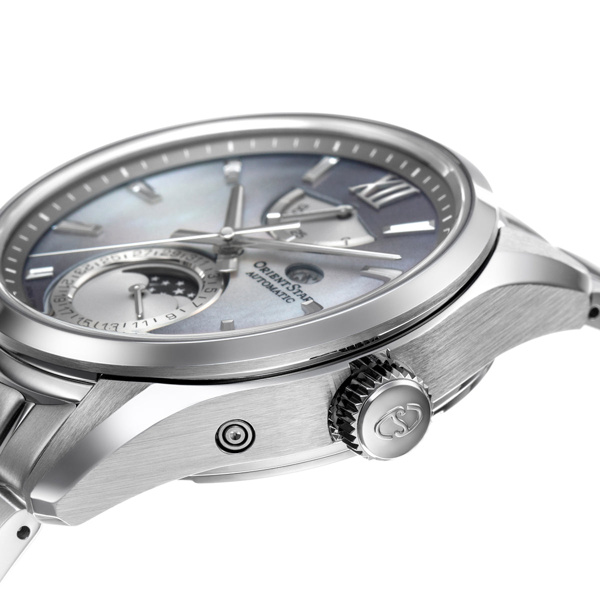 The powerful case design is sharp and edgy, with a mirror finish achieved by thoroughly smoothing out the surface with Sallaz polishing. The dual curved sapphire crystal not only improves visibility, but also allows the wearer to fully experience the beautiful colour transitions of the mother-of-pearl dial.