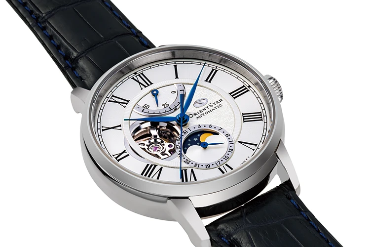 At six o’clock, an in-house moonphase complication marks the rhythm of time. Set within a profound blue evoking the night sky, luminous stars and a softly glowing moon come together in quiet harmony. It is a vision of beauty that invites reflection—where gazing upon the moon becomes a moment of richness and serenity.”