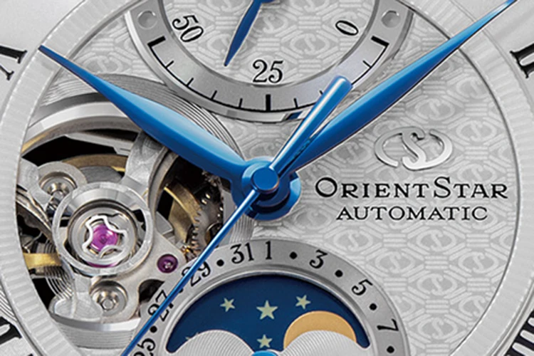 The dial is subtly decorated with a logo-inspired pattern that embodies the brand itself. Centred on the OS mark, which has endured since the brand’s inception, the design is composed of interlocking diamond shapes inspired by a traditional Japanese motif, creating a refined and harmonious whole.