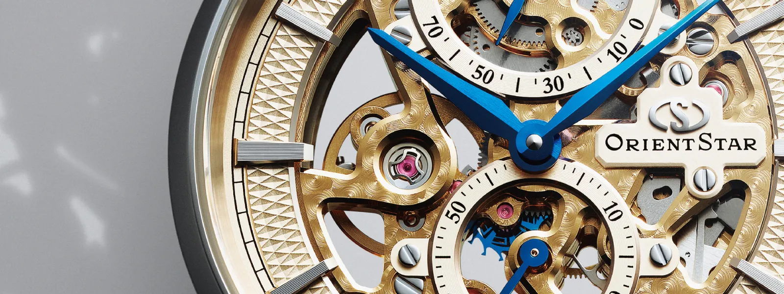 An intricate skeleton design reveals a movement that gleams like a comet’s trail.