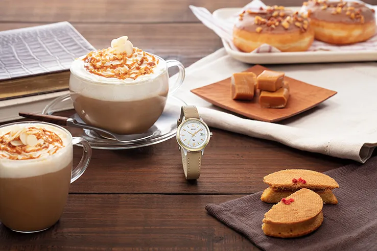 キャラメルマキアートをテーマにした大人ベージュカラーのレディースモデルが「ORIENT」の『イオ』から新登場