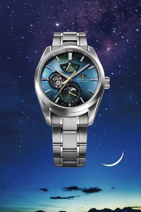 「ORIENT STAR」より「星雲」をイメージしたマザーオブパール(MOP)文字板を用いる『メカニカルムーンフェイズ』登場