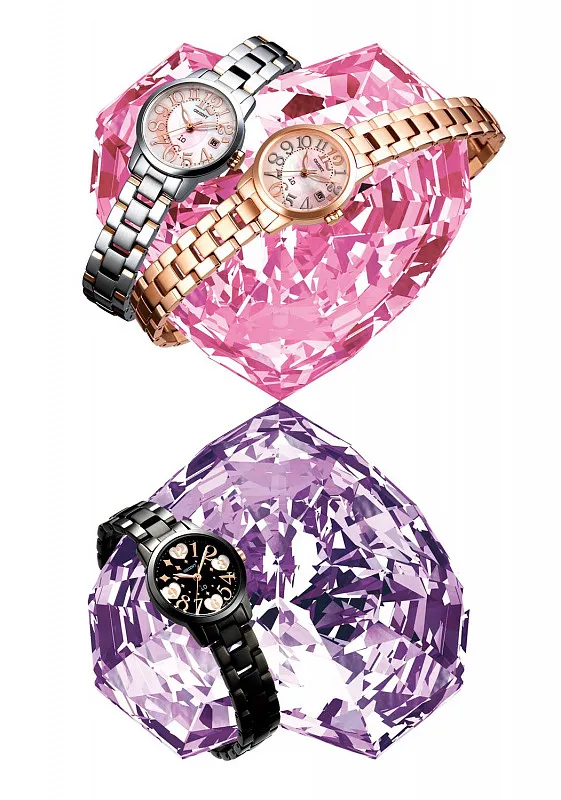 なお、どちらのラインにも、遊び心あふれる大人気のハート型りゅうずを使用したほか、ベーシックなラウンド型ケースながらも、少し大きめのケースサイズが新鮮に感じられる、可愛らしいアイテムとなっております。
