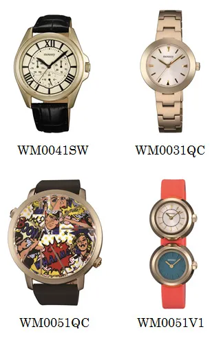 | 【品番/文字板/価格】 | WM0011SW / ホワイト / 16,800円(税込) WM0021SW / ホワイト / 18,900円(税込) WM0031SW / ゴールド / 22,050円(税込) WM0041SW / アイボリー / 18,900円(税込) WM0051SW / ブラック / 22,050円(税込) WM0011QC / ブラック / 14,700円(税込) WM0021QC / ホワイト / 16,800円(税込) WM0031QC / ホワイト / 16,800円(税込) WM0041QC / ブラック / 16,800円(税込) WM0051QC / アメコミ(フルカラー) / 17,850円(税込) WM0061QC / アメコミ(ホワイト×オレンジ) / 17,850円(税込) WM0071QC / シルバー / 17,850円(税込) WM0081QC / ゴールド / 17,850円(税込) WM0091QC / ブラック×ネイビー / 17,850円(税込) WM0011V1 / ブラック×ホワイト / 21,000円(税込) WM0021V1 / グリーン×ブルー / 21,000円(税込) WM0031V1 / ホワイト×イエロー / 21,000円(税込) WM0041V1 / ホワイト×ピンク / 21,000円(税込) WM0051V1 / ホワイト×グリーン / 21,000円(税込) |