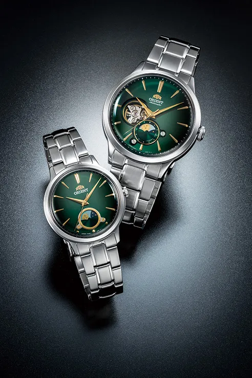 「ORIENT」からグリーンダイヤルが鮮烈な70周年限定の『SUN&MOON』ペアウオッチが登場