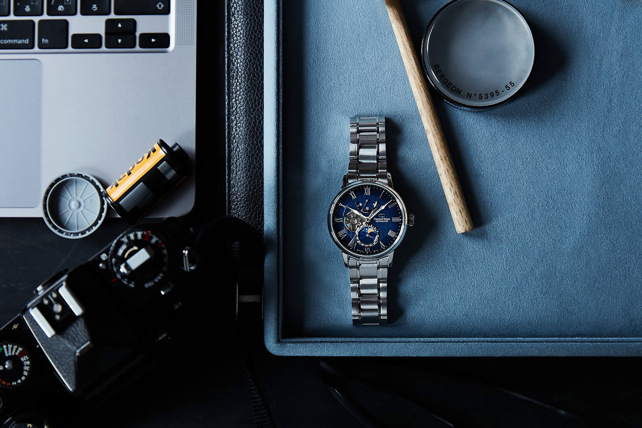オン・オフを問わないシームレスな魅力と、機械式ならではのアナログな癒し。新生オリエントスター「メカニカルムーンフェイズ」が、デジタル時代の中で際立った存在感を放つ。