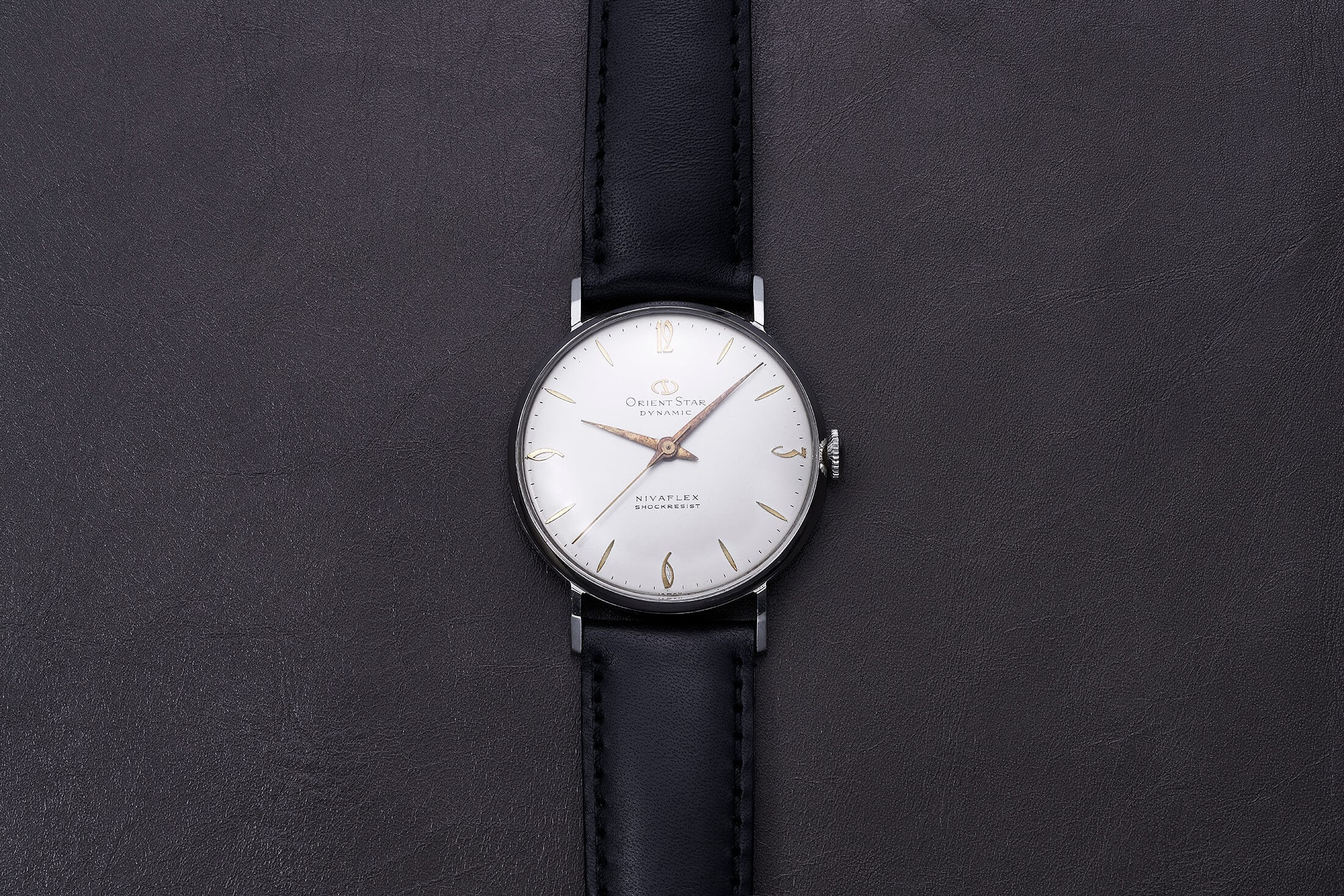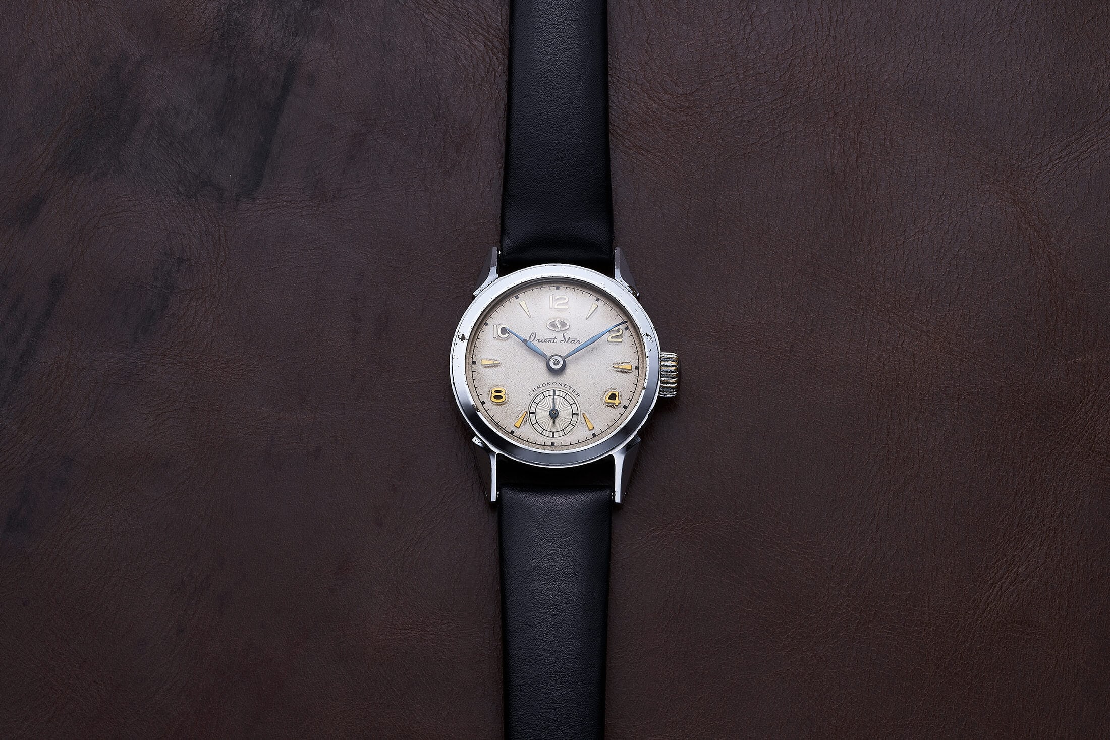 1950年、東京・日野市に時計メーカーが誕生した。翌51年には社名をオリエント時計に改称し、同年、現代に続く初代“オリエントスター”を完成させた。その名に込めたのは、デザイン、製造、部品の全てにおいて“輝ける星”を目指すという想い。針は熱処理で鮮やかに発色させたブルースティール製とし、インデックスはゴールドメッキしたアプライドと、その上質な外装には当時の技術者たちの情熱がうかがえる。