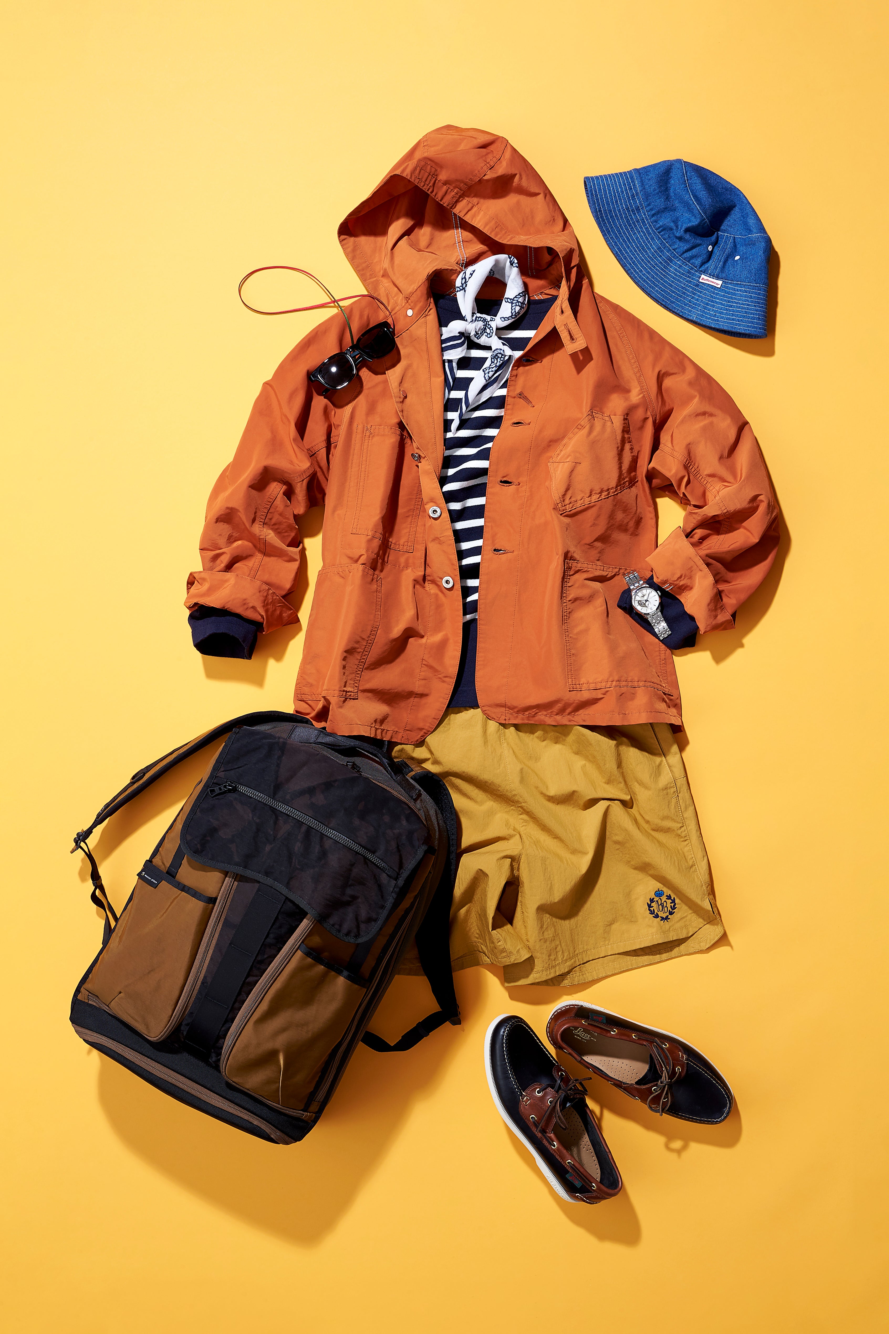 「この数年は驚くほどのアウトドアブーム。といっても登山やキャンプがメインで、ウエアのカラーもベージュやカーキなどのいわゆるアースカラーが主流でした。この流れは今年も続きそうですけれど、人とは違った服装をしたい、新鮮みが欲しいということでしたら、今年は“海”に注目してみては。海をテーマとしたマリンルックの着こなしのポイントは、イエローやオレンジといったビビッドなカラーや、チェックやボーダーなどの柄物使い。着るだけで気分が明るく元気になるようなコーディネートです。もちろん街で着るのもOKです。その場合は、インナーの柄を多めに見せる、足元をアウトドアシューズからレザーのもの、例えばデッキシューズに変える、などのアレンジを加えると良いでしょう」