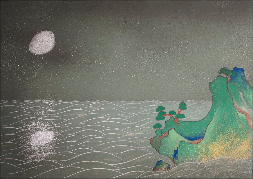 私の本来の絵画には、あらゆる時間と記憶がレイヤーのように重なって出現する水墨作品と、絵巻のように長い物語時間の大和絵作品があります。そこには機械的には刻まれない光と闇の記憶空間があるのです。今回のムーンフェイズ機構の時計には時を刻むだけではない、茫洋とした記憶風景のような空間を感じる気がします。今回の日本画作品はそのようなイメージで描きました」
