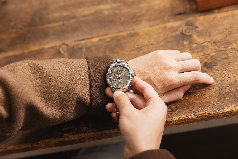 Kinoshita これからの季節でいうと、グレージュのモデルはウールやフランネル素材のグレースーツで、ワントーンでまとめるとすごくきれいに見えると思います。その場合はインナーで少し遊ぶこともできますよね。オリーブに関しては、ベーシックなスタイリングの中で時計の色を生かすとか、カジュアルなスタイルで時計の存在感を見せることもできるかなと。夏場のシャツ1枚、Tシャツ1枚でもすごく映えると思います。