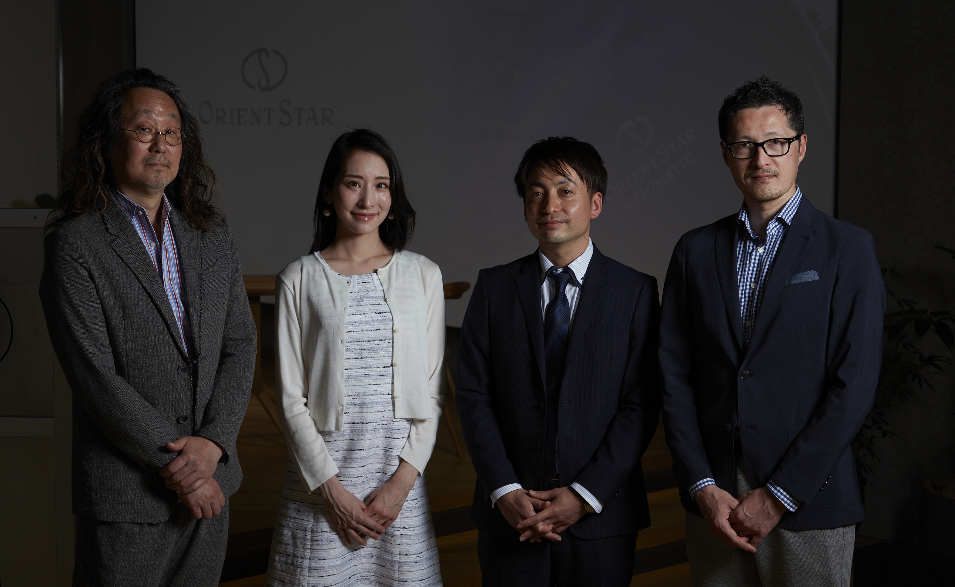 向かって右側に座る男性2名は若干緊張してこわばった面持ち。一方、向かって左側に座る男女2名は、少しピンと張りつめたその空気を逆に楽しんでいるかのような余裕の表情で、笑顔も自然に浮かんでいる。