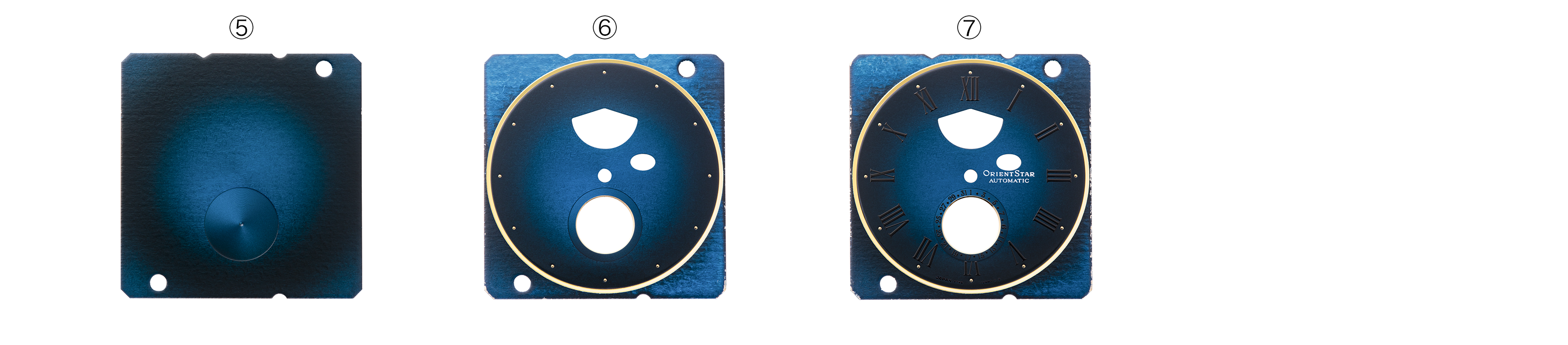 『腕時計魂!』では、ロック福田氏と丸山氏はもちろん、おそらくは生配信中の視聴者の目もくぎづけにしたであろう「メカニカルムーンフェイズ M45」文字板のステップサンプルである。今回、あらためてその一つひとつを紹介していく。