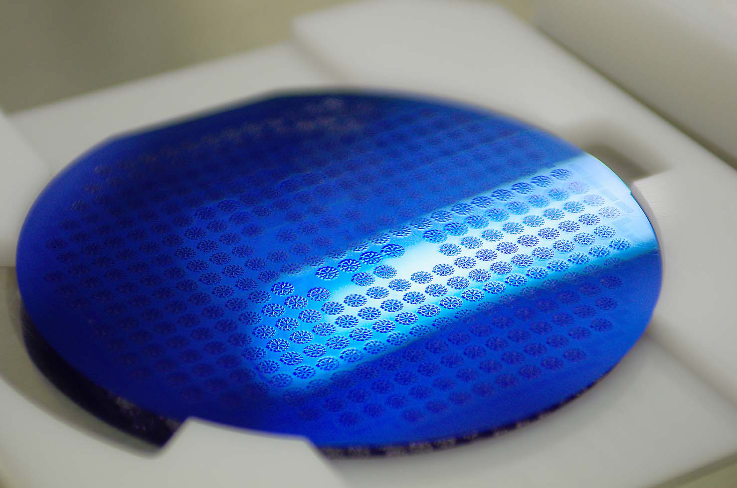 青のシリコン製がんぎ車、そのモチーフとなったのが天の川銀河。見る時間、見る角度などによって異なるこの「青」をシリコンで再現するために、nm(ナノメートル)単位で膜厚をコントロールして光の反射率を調整。独自の高精度製造技術で、こだわりの「青」へ。