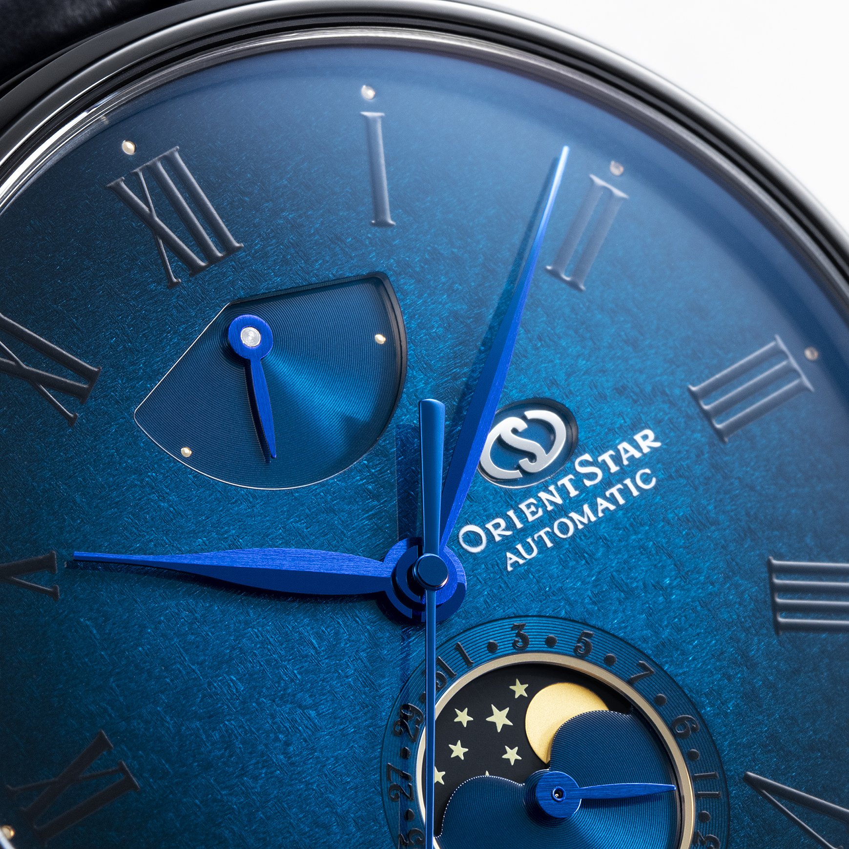 時代が移り変わっても、“すばる”に変わらない美しさがあるように。「メカニカルムーンフェイズ M45」も“変わらない美しさ”を追求。光の角度で表情が変わったり、夜空をグラデーションで表現したりなど、さまざまな技巧を凝らした文字板に注目したい。