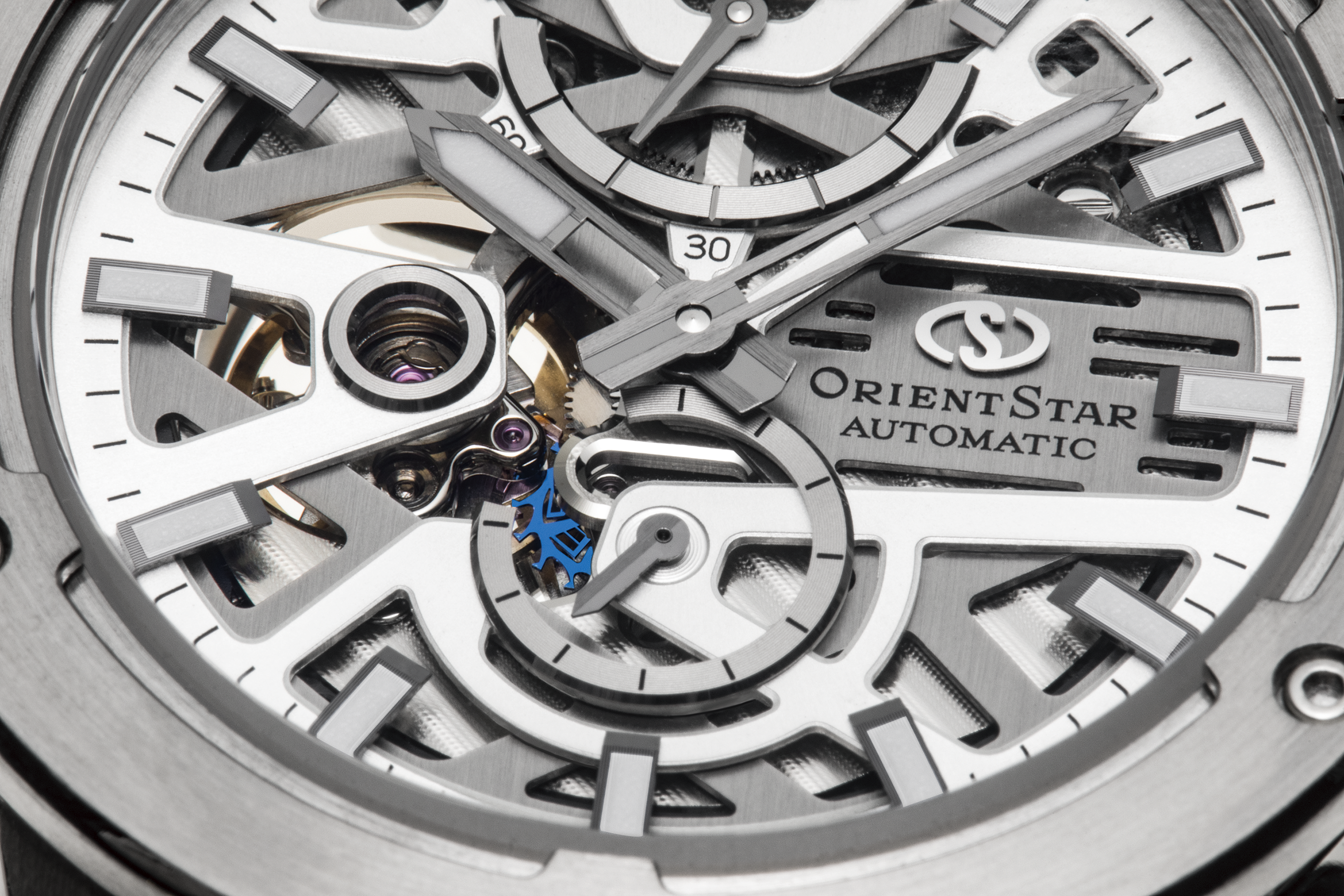 「アバンギャルドスケルトン」が搭載しているのは、自動巻きムーブメントの「F8F64」。ここには、オリエントスターで自動巻き初のシリコン製がんぎ車が採用されている。探求の末にたどり着いた、「青」の魅力について語っていく。