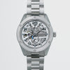 シリコン製がんぎ車という「軽さ」を手に入れることで、パワーリザーブが約10時間も延びて約60時間へ。インジケーターに新たに記された「60」が誇らしい。それは、オリエントスターの時計技術とエプソンのプリンター技術(MEMS加工技術)、その融合の成果だ。