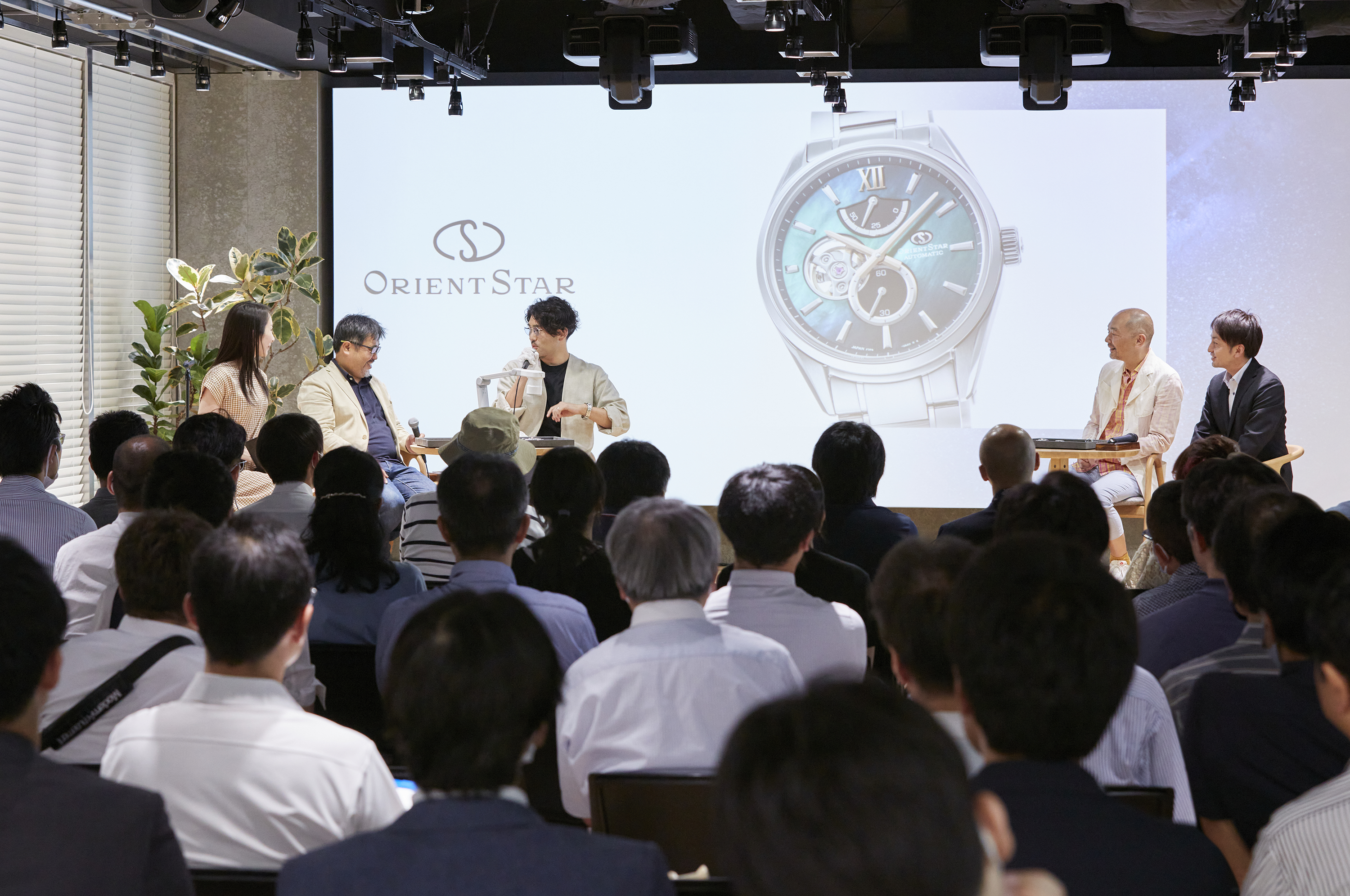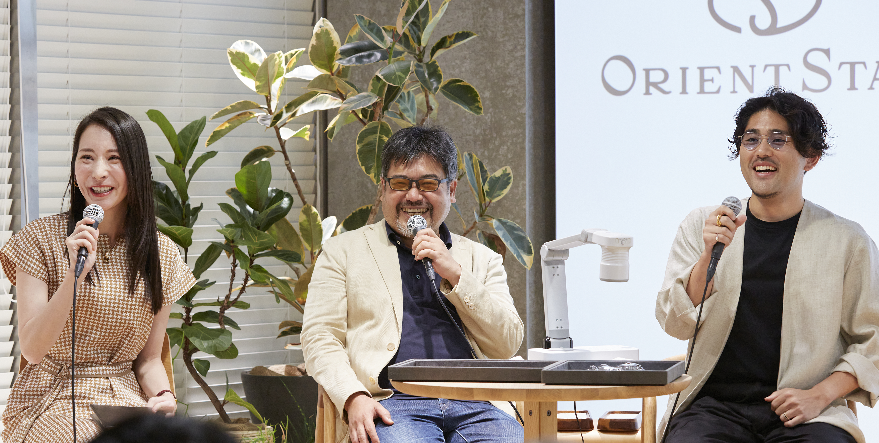 弊社の商品企画担当者2名も加わった計4名で、オリエントスター秋冬の新作を深掘りしていくトークショーがスタートしました。