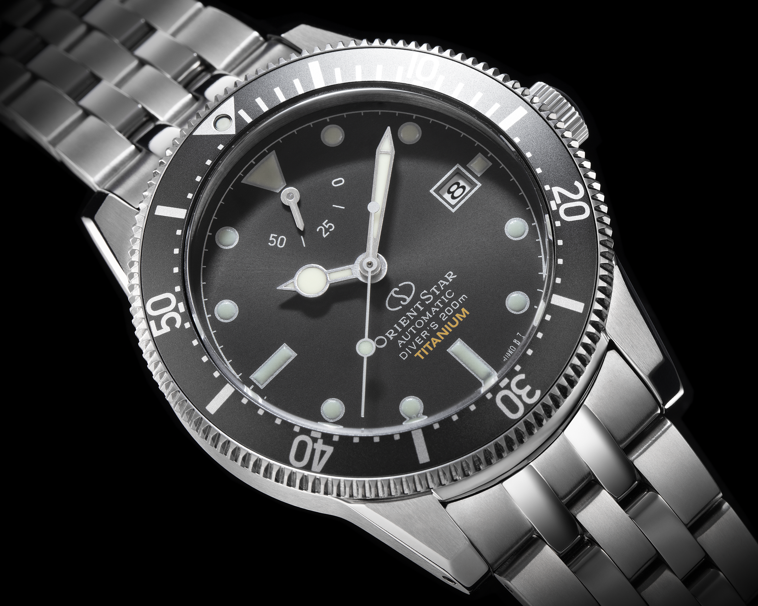 関口氏が「ダイバーズウオッチのデザインは差が出づらいけれども、オリエントスターのデザインにはオリジンがある」と評価したのが『M42 ダイバー1964 2nd エディション F6 デイト 200m チタン』。広田氏は「ISO 6425規格に準拠した本格的なダイバーズウオッチで、チタン製ならではの113gという軽さ」を強調すると共に、回転ベゼルの触り心地やグレートーンの色調など、チタンという素材がもたらす魅力を力説していました。