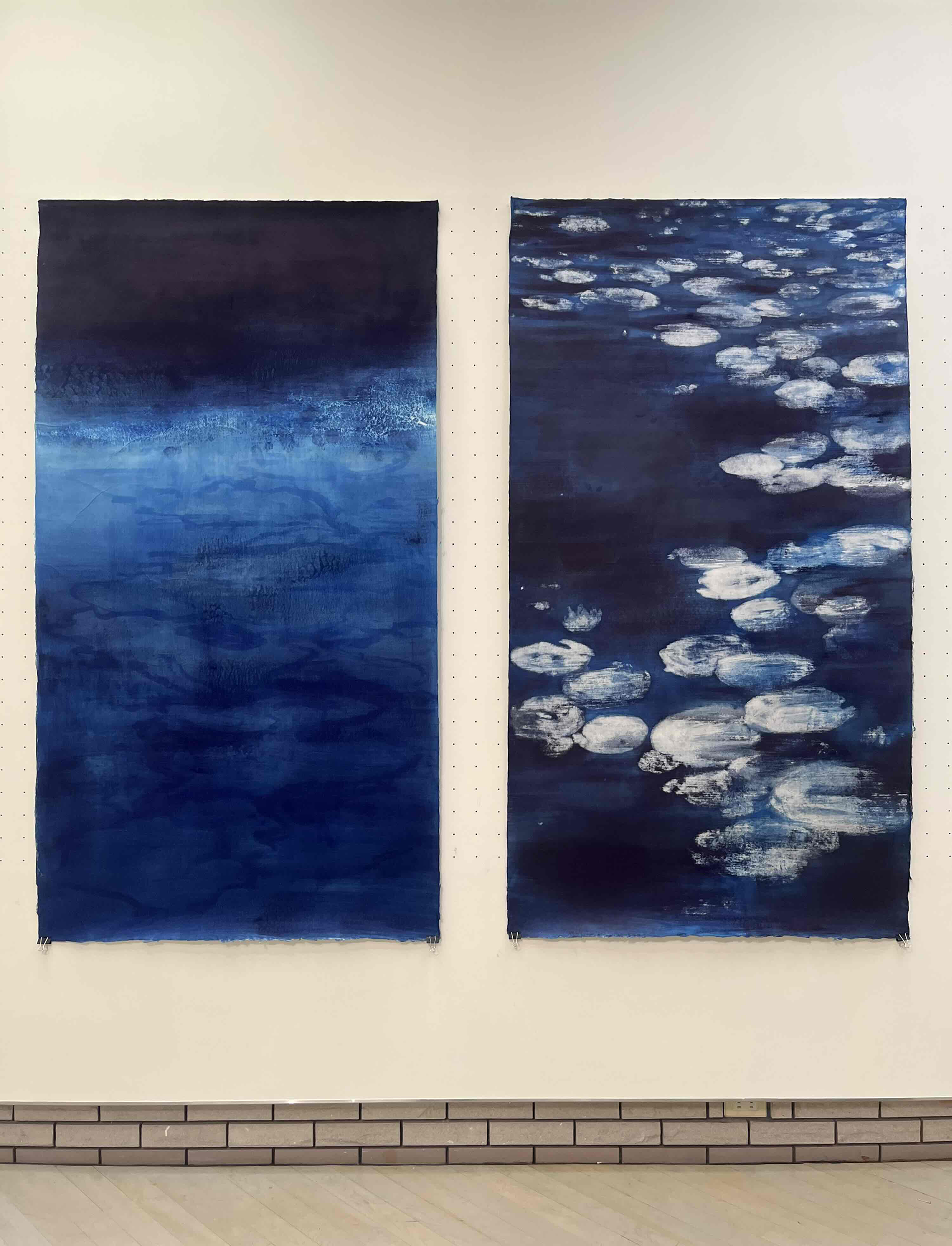 「ある時、地塗りをしてきれいに整えた紙の上に、誤って墨を1滴垂らしてしまったんです。しょうがないからもっと垂らしてみようと思い、墨とさらに銀泥を加えてどんどん垂らし込んでいたら、だんだんと面白い景色が見えてきた。ちなみに、この墨と銀泥の“垂らし込み”は琳派の技法の一つです。良い感じの沁み(しみ)があれば、消したくても消せない沁みもあって、私は“記憶の沁み”と呼んでいるのですが、良い記憶も悪い記憶も、その沁みの上にまた沁みを重ねてみようと。すると、自分の記憶の沁みの歴史が表れてくる。沁みって一般的にはポジティブに捉えられないけれど、そこに味わいが出てきたり、何とも言えない景色に見えてきたり、あるいはそれを美しく昇華できるのが絵画だなと思っています」