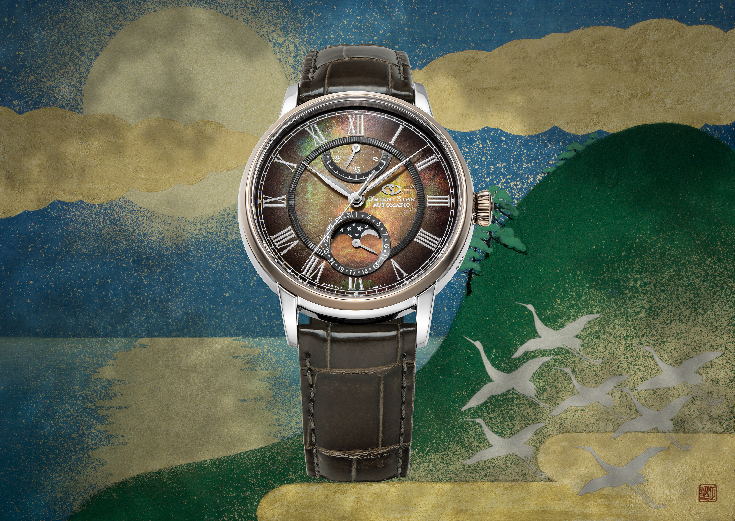 そしてもう一つ、西野さんの創作にインスピレーションを与えたのが、この時計のイメージの源泉となった秋田県の田沢湖です。秋田県はオリエントスターの時計が製造される場所。その地の名景である田沢湖の自然や、湖面に映る月の美しさを真珠母貝の文字板で表現したのがこのモデルです。