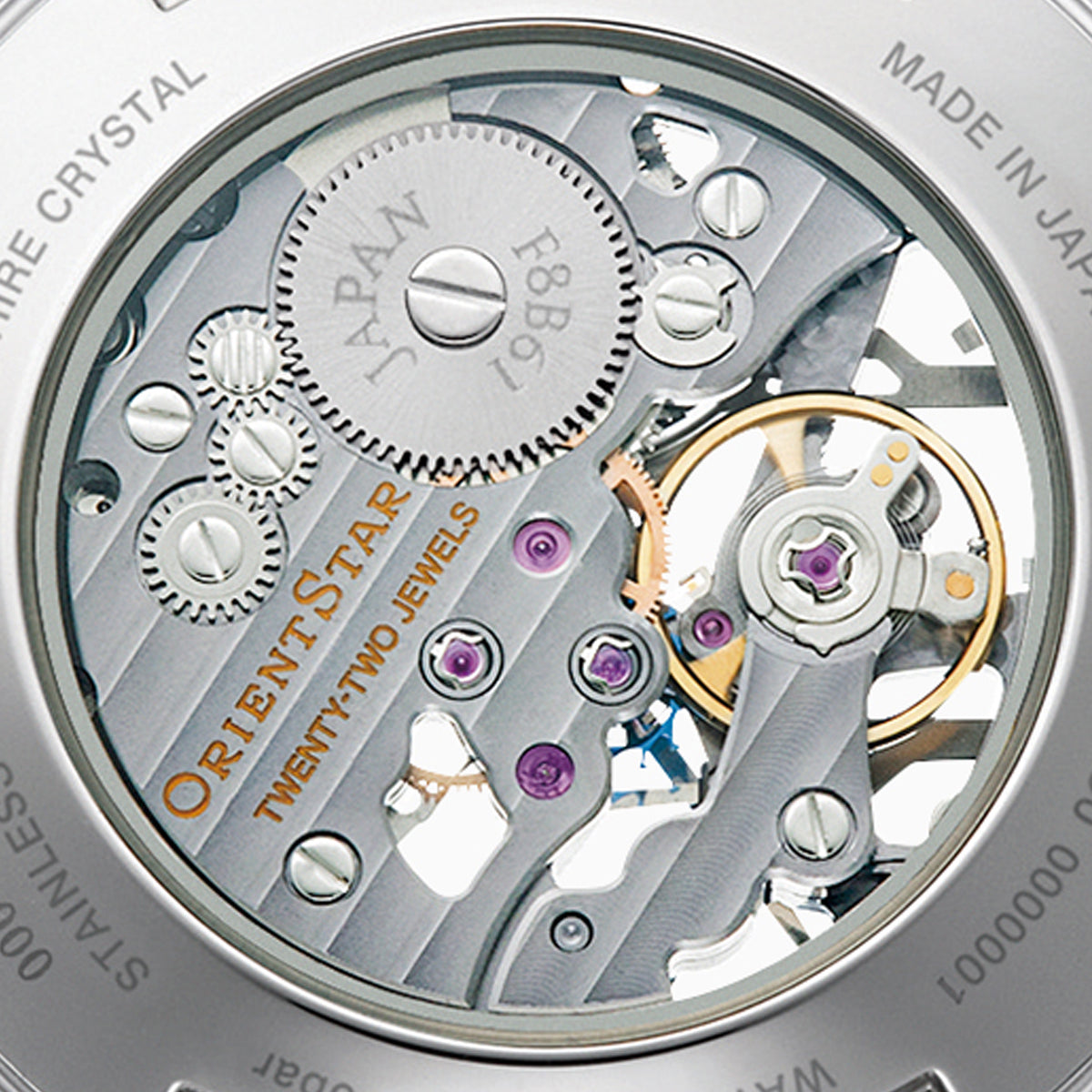 搭載されるのは、実用性に優れる自社製の手巻きムーブメント「F8B61」。ムーブメントは骨格のみを残し、メカニズムを見て楽しめるように工夫が凝らされています。