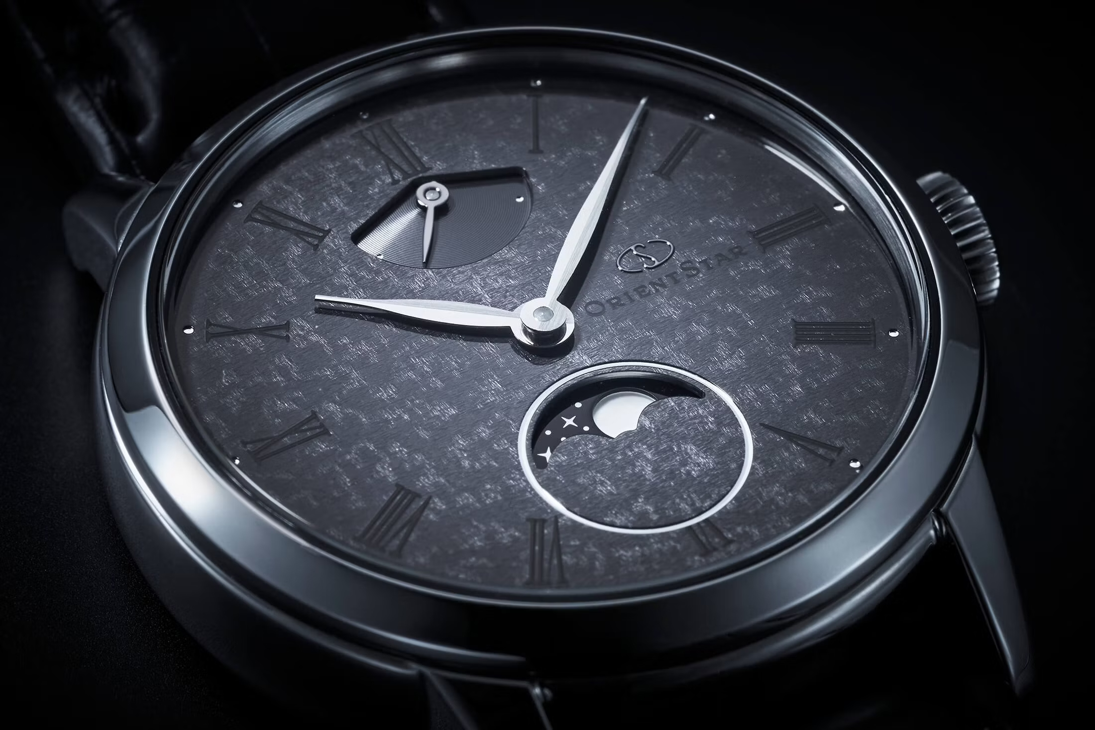 この新作がラインナップにもたらしたものをあえて挙げるとすれば、それは詩の持つ情緒的な雰囲気や、詩的な表現をしたいという“詩情”、言い換えれば時間の感じ方そのものを問い直すような提案だ。明らかにそれはオリエントスターが培ってきた審美性が、“静の美”という新たな境地へ歩を進める、次なるフェイズを予感させる。華美さよりも静寂、刹那のきらめきよりも永続していく移ろいを感じさせる。それがこの新たなメカニカルムーンフェイズにおける表現の軸になっている。