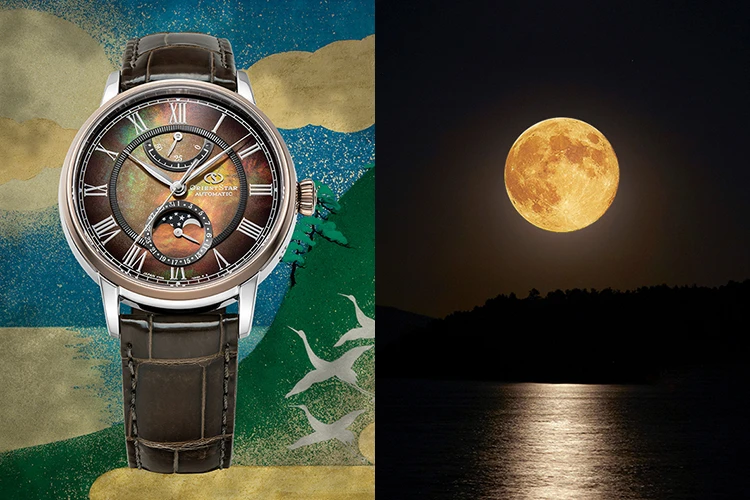 白蝶貝の織り成す独特の表情は一つとして同じものがなく、時計が刻む静かな時の流れの中で湖面を照らす穏やかな月光や、滑るように吹き渡る晩秋の風までもが目に浮かぶかのようです。
