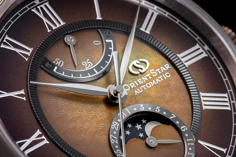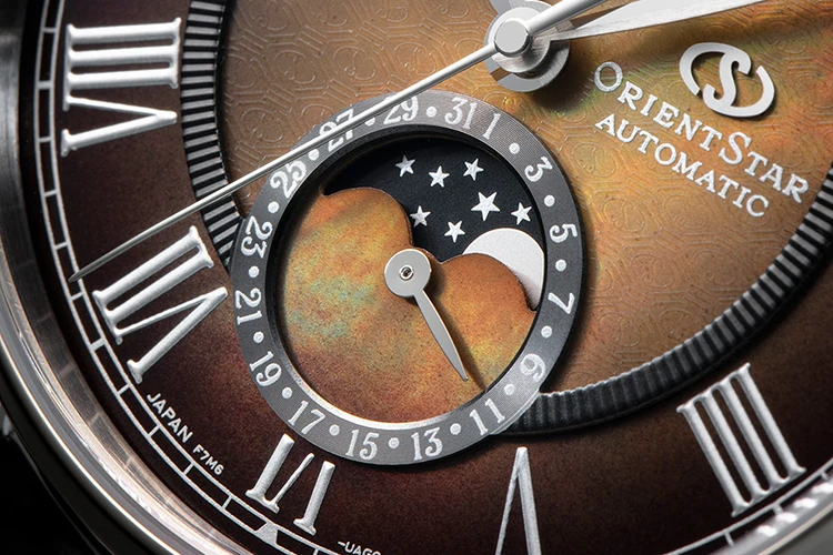 冬の訪れが近づく、ひっそりとした夜の田沢湖の情景をモチーフに、メカニカルムーンフェイズで表現しています。
