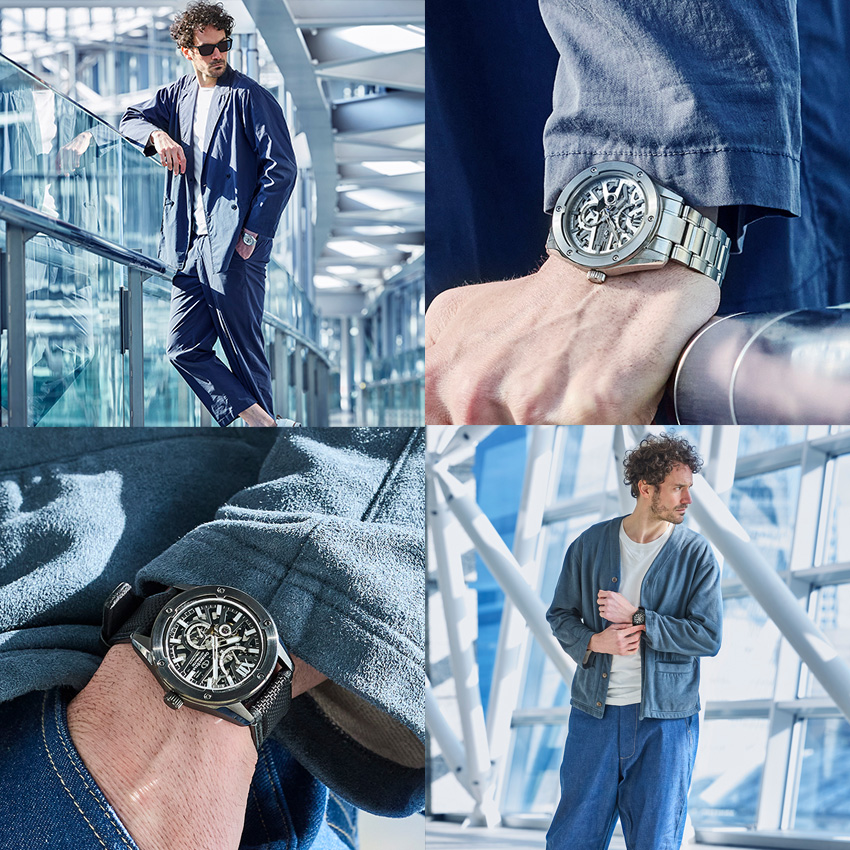 腕馴染みのよいピッチの短いH型駒バンドを採用、力強さを感じさせる立体的な凸形状エンドピースを含め、