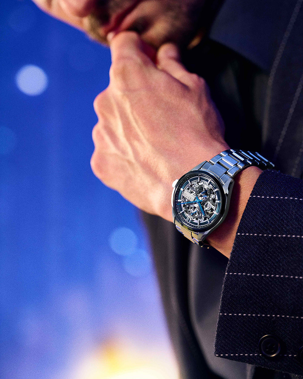 モダンでスタイリッシュなデザインと、凝ったディテールによって深宇宙に輝く恒星の光を表現するスケルトンムーブメントとのユニークな融合が時計愛好家を魅了します。