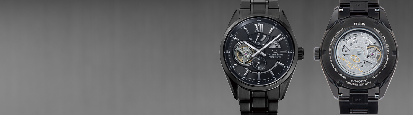 ・鏡面と筋目を使い分けたエッジの効いたケース形状は、文字板と合わせたワントーン仕上げ。インデックスとベゼルカラーを統一させることで、スタイリッシュさを強調しています。