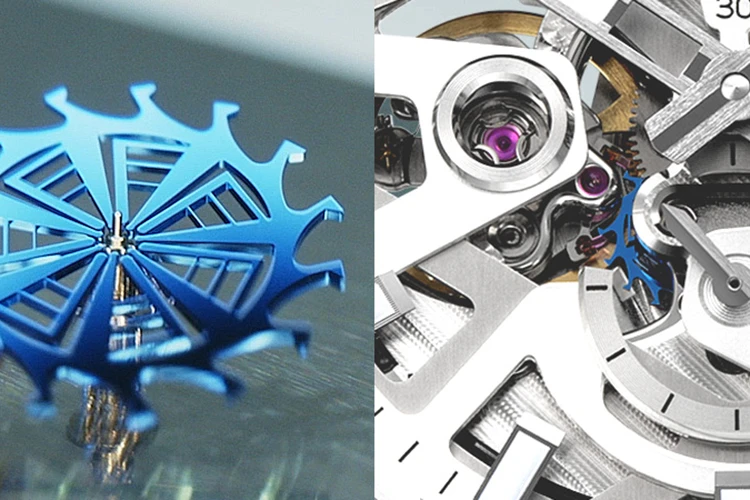 天の川銀河の美しさを表現しつつ長時間駆動を実現する、シリコン製がんぎ車搭載のオリエントスターF8ムーブメントに、新たに自動巻仕様が加わりました。デザインから製造まで一貫して自社開発したシリコン製がんぎ車は、MEMS加工技術と半導体成膜技術を応用しています。