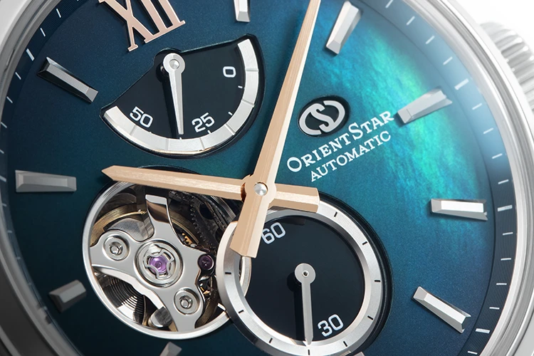 見る角度によって表情が変化する白蝶貝文字板や、連続して色彩が変化するグラデーションは、まさに刻々と変わる神秘的な発光現象のオーロラのイメージを描き出すのに最適です。