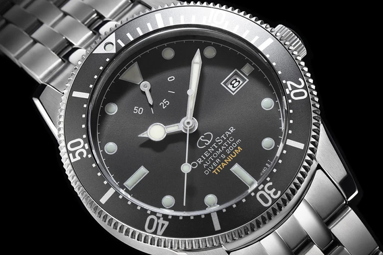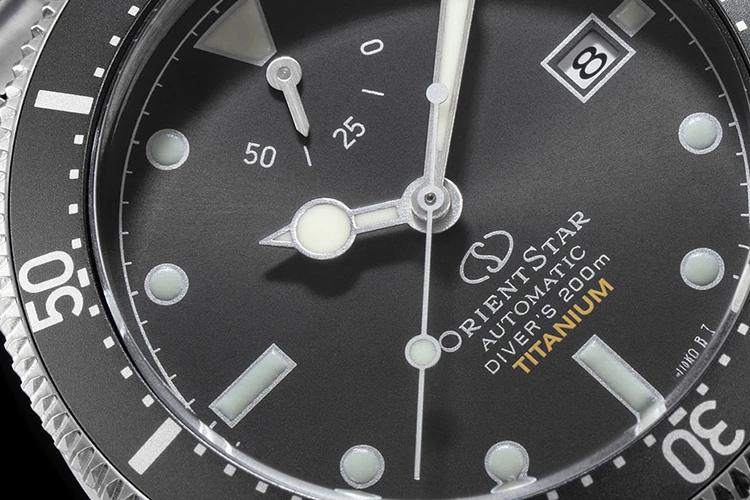 ケースとベゼル合わせて文字板や回転ベゼルの表示板にもマットなグレーを取り入れ、針にも艶消しと筋目加工を施しています。